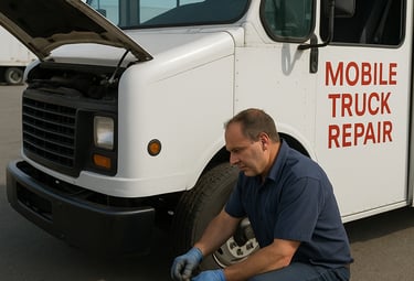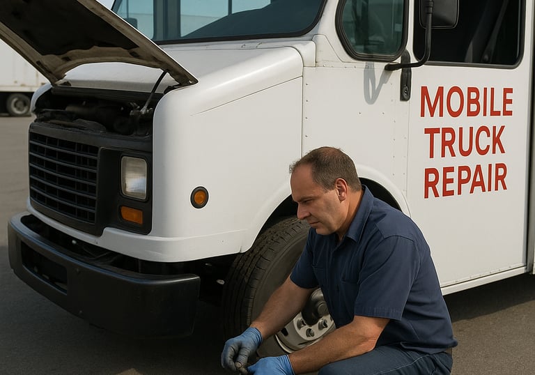 We provide Mobile Truck Service on all types and sizes of class 3 and above power units whether a step van, box truck or semi. Repairs that we provide on the roadside include but are not limited to: